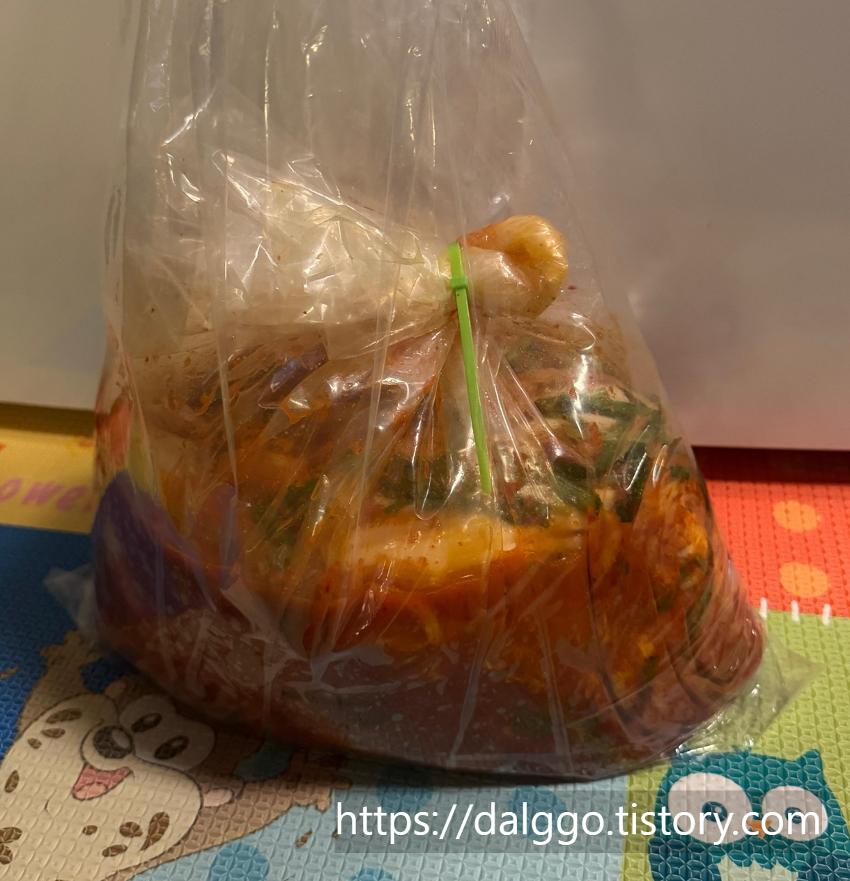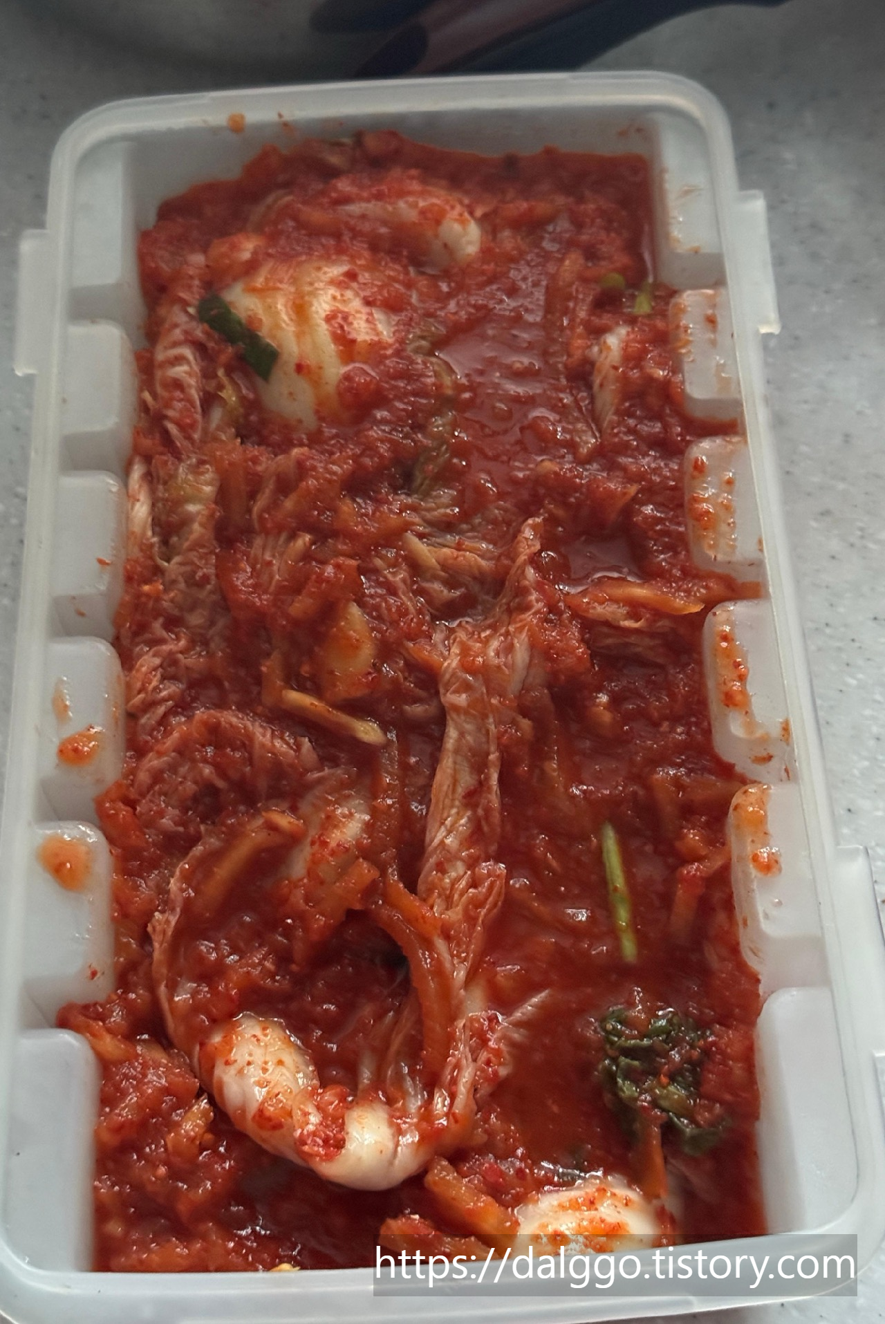 김치통에 담았어요.